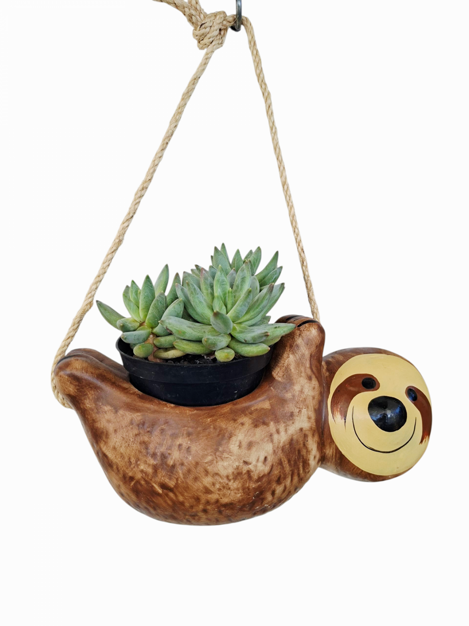 Uma fofura essa peça! Um presente que agrada a todos os gostos! Vaso pendente em porcelana bicho preguiça com uma linda suculenta premium.